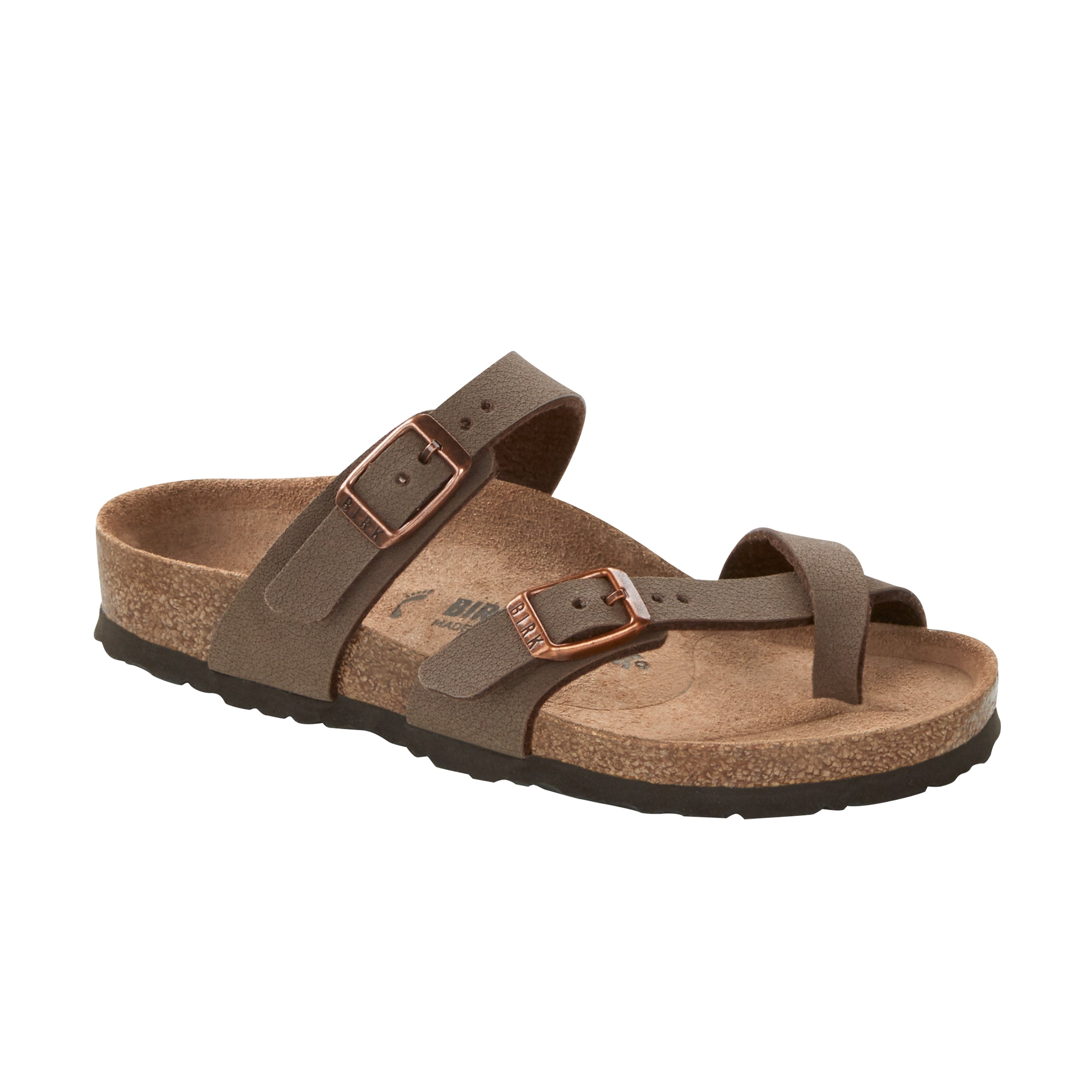 The Birkenstock Mayari thong sandal is a distinctive classic model with a toe loop and cross strap. The combination of anatomically shaped footbed and secure adjustable instep strap makes Mayari extremely wearable in a wide range of situations. Classic support and adjustability, designed beautifully.